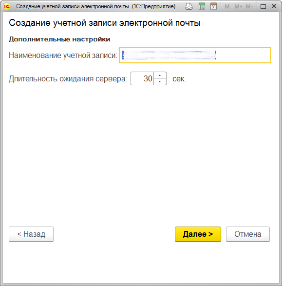 В новом окне вводим наименование учетной записи и длительность ожидания сервера или же сохраняем значения, заполненные по умолчанию.